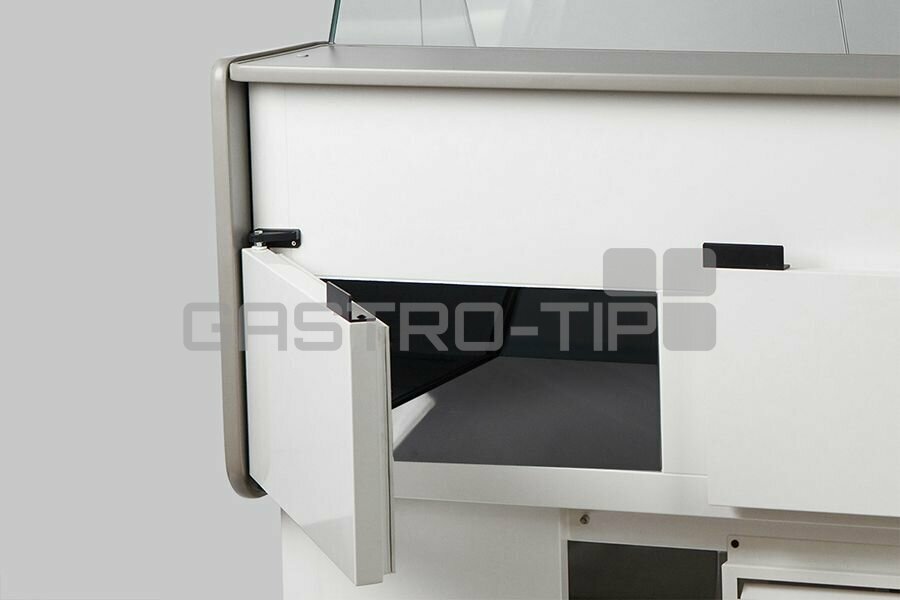 STANDARD: Rozměrný nerezový chladící úložný prostor, nerezová pracovní deska, osvětlený výstavní prostor, dno (leštěný nerez) snadno demontovatelný, tvrzené rovné čelní sklo (možno otevřít), statické chlazení, elektronické ovládání s teplotním.....