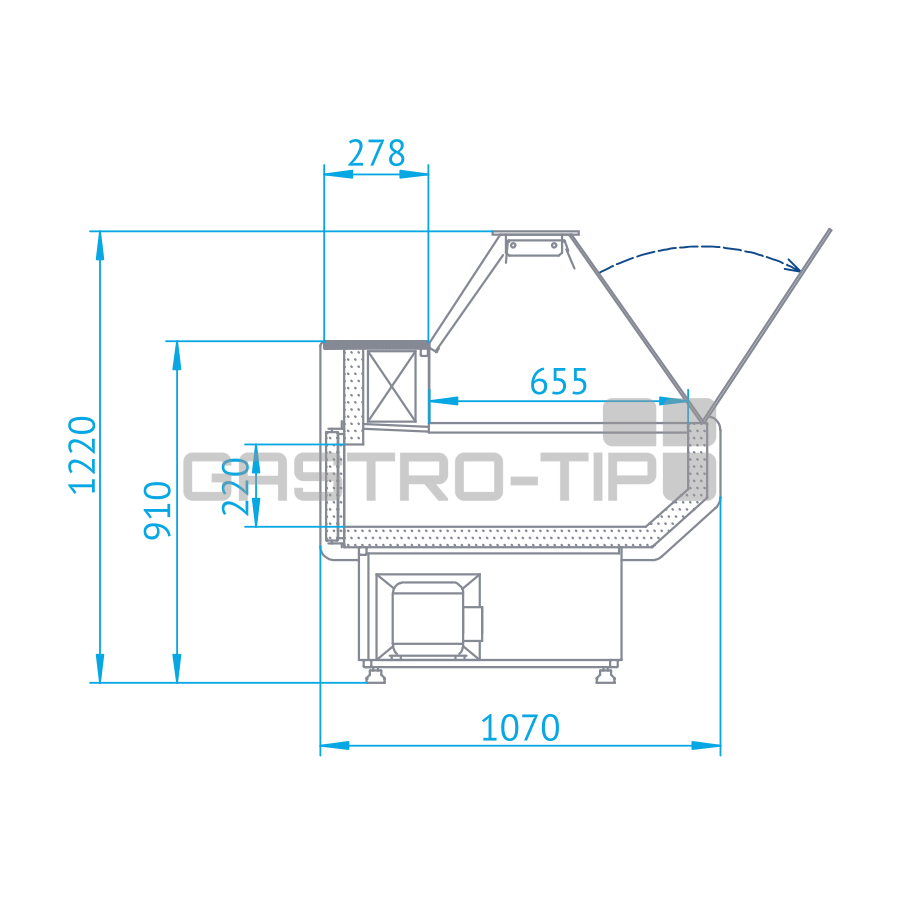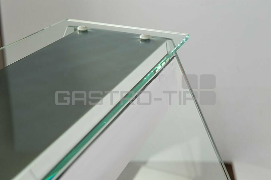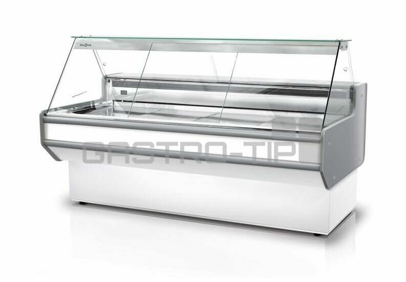 STANDARD: Rozměrný nerezový chladící úložný prostor, nerezová pracovní deska, osvětlený výstavní prostor, dno (leštěný nerez) snadno demontovatelný, tvrzené rovné čelní sklo (možno otevřít), statické chlazení, elektronické ovládání s teplotním.....