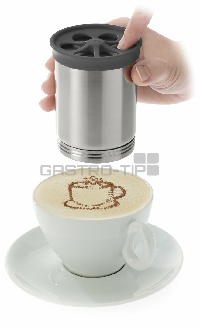 Kávové zdobítko v provedení nerez / plast s vyměnitelnými obrázky.
