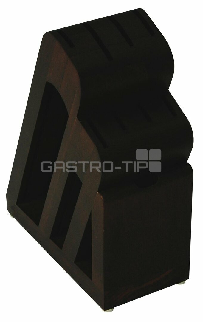 Dřevěný stojan na nože z tmavého bukového dřeva.