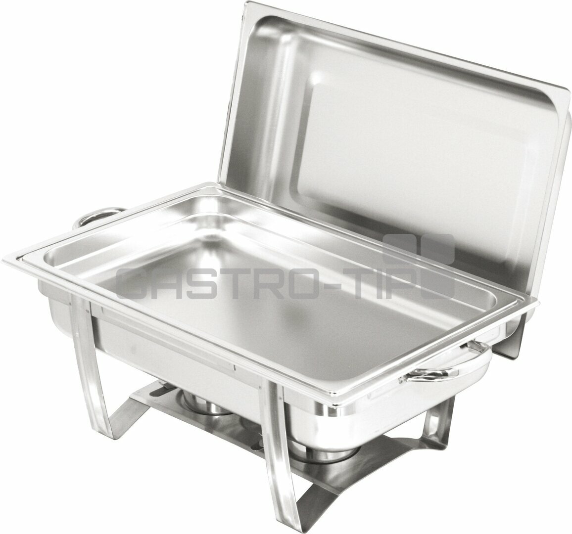 Chafing TOP GN1/1 v provedení bain-marie s šetrným ohřevem, odnímatelné víko s držákem, dvěma zásobníky na hořlavou pastu 200g (*pasta není součástí dodávky). Celonerezové provedení s možností stohování (snadné rozložení na jednotlivé díly).