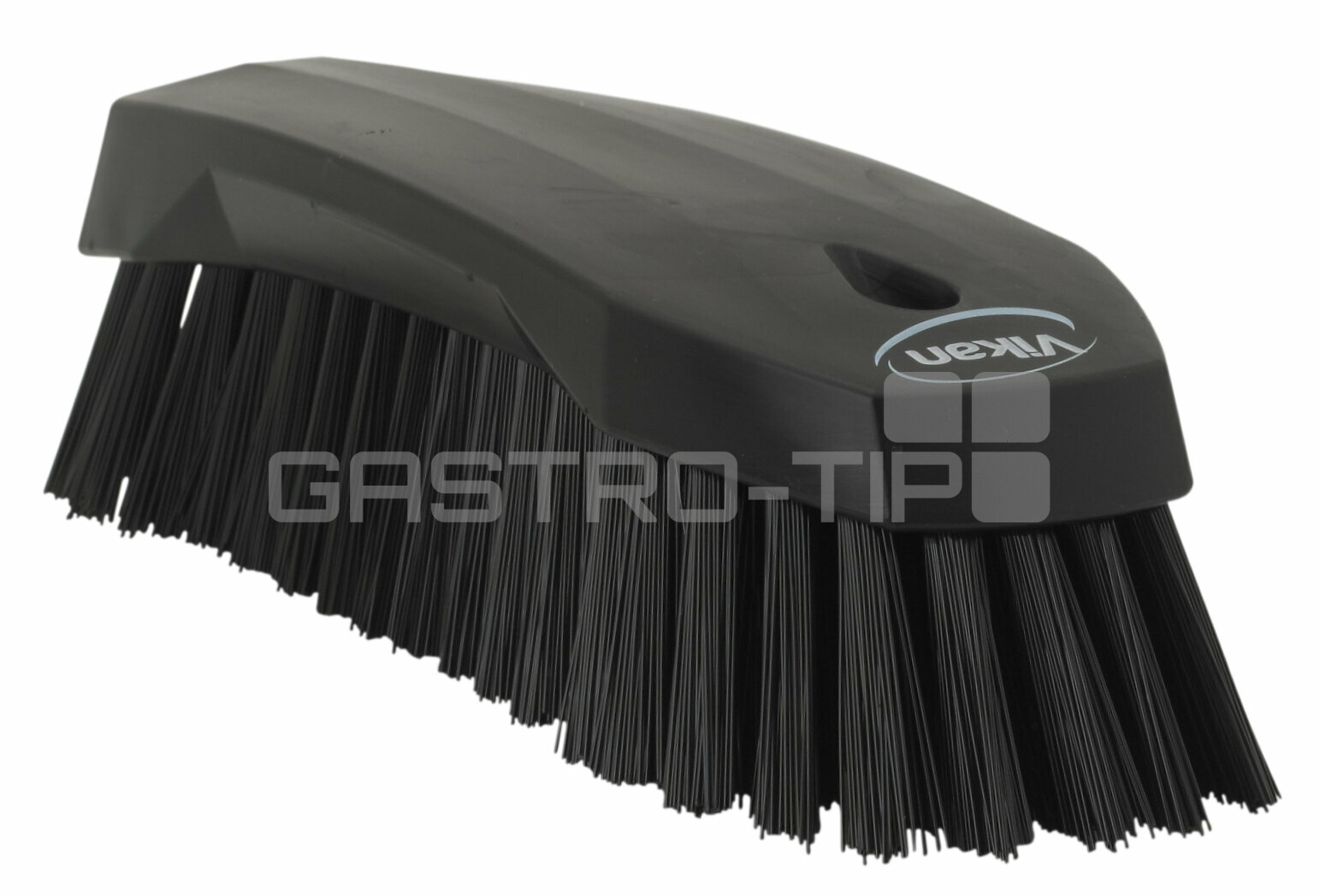 Víceúčelový ruční kartáč pro čištění stolů, velkých nádob, strojů a dalších zařízení s obtížně přístupnými rohy a štěrbinami. Konec kartáče je opatřený tvrdšími štětinami pro odstranění odolných nečistot.