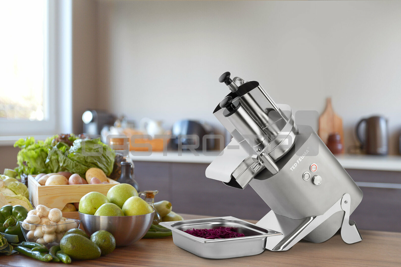 TED se hodí do každé kuchyně. Stroj je pro VŠECHNY, kteří chtějí zpracovávat ovoce a zeleninu ve vynikající kvalitě. Stroj na krájení zeleniny, který v tomto provedení nikde na světě neexistoval. Vysoce kvalitní, odolný, spolehlivý. V té nejlepší kvalitě, s IP65 a certifikátem GS a s perfektními výsledky krájení pro krásné čerstvé saláty. Tento stroj je k dispozici v nerezové oceli, antracitové, světle zelené nebo bílé.