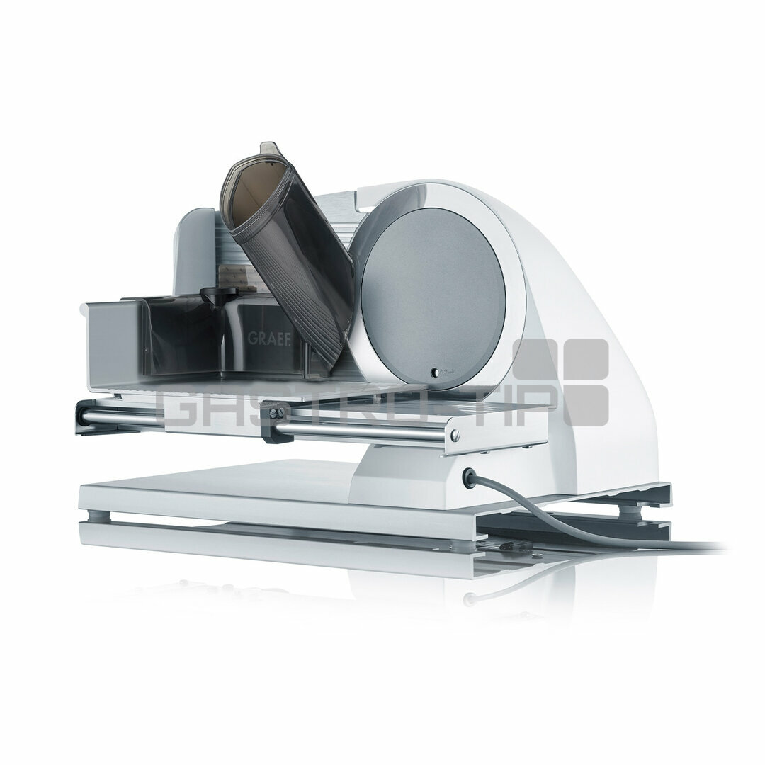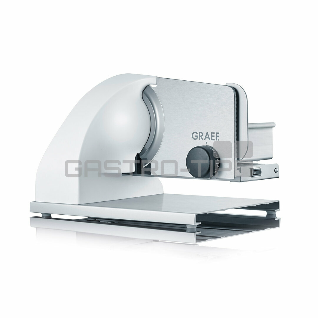 Bílá varianta vysoce kvalitního kráječe, na který je spoleh ve všech ohledech. Tichý motor o výkonu 185 W, nastavitelná tloušťka krájení a odolné provedení zaručují ten nejlepší výsledek i uživatelský zážitek. Díky praktickému provedení lze výrobek snadno a rychle čistit. Hladká ocelová čepel se dá brousit i doma. Kráječ je velmi stabilní a jednoduše se ovládá. Typický vzhled produktů Graef se perfektně hodí k doplnění příjemného vzhledu vaší kuchyně. Hmotnost je 9.645 kg.