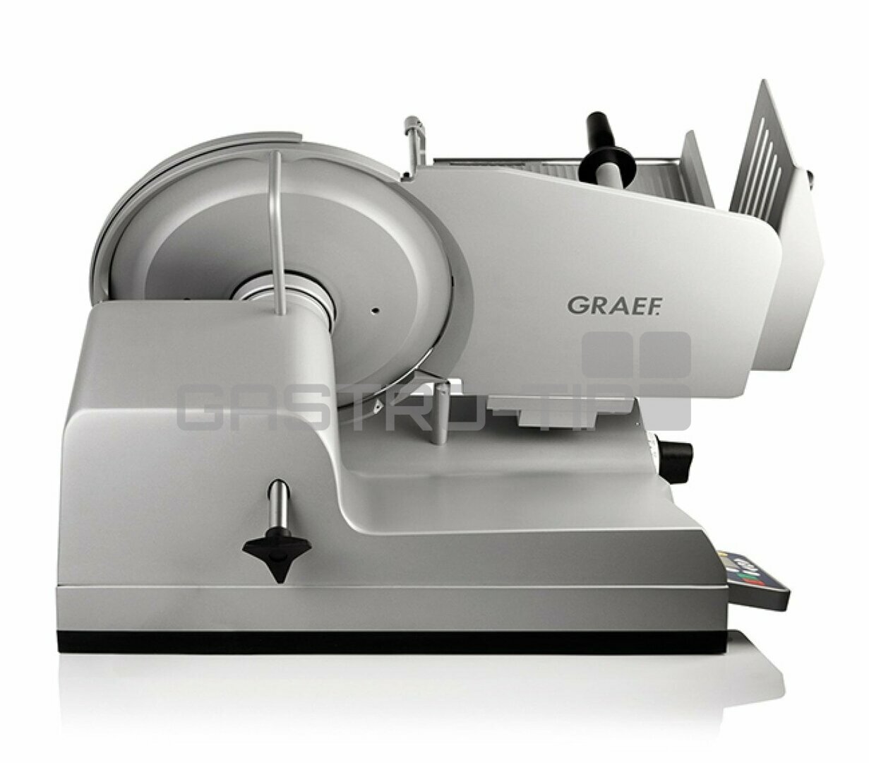 Profesionální nářezové stroje Graef linie MASTER CERA3 v hliníkovém provedení se speciálním keramickým nepřilnavým povrchem CERA3 (kompletní opláštění včetně vozíku a nože). Všechny komponenty lze snadno demontovat bez nutnosti použití speciálního nářadí. Pohon stroje je zajišťován šnekovým převodem s výkonným bezúdržbovým vzduchem chlazeným motorem. Ke stroji je dodáváno speciální výkonné brusné zařízení. Přesné nastavení síly řezu a uchycení produktu na vozík s odlehčeným pojezdem pro velice snadné krájení. Bezpečné voděodolné ovládání s piezzoelektrickými odolnými spínači. Podstava stroje je vybavena protiskluzovou gumou zamezující nechtěnému pohybu stroje a usazování nečistot pod zařízení.
