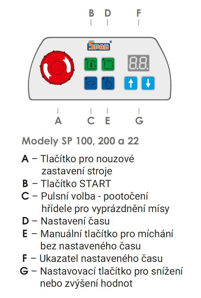 intuitivnímu ovládání, snadné obsluze, čištění a údržbě. Profesionální univerzální kuchyňský robot SP 22 SPAR se vyrábí ve