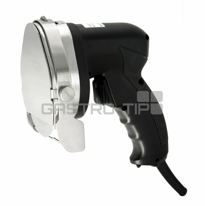 Profesionální elektrický nůž na gyros-kebab. Je určen pro snadné, přesné krájení/seřezávání grilovaného vepřového, nebo kuřecího masa připraveného na gyros grilech. Snadná regulace a nastavení požadované tloušky krájení. Bezpečné spouštění umístěno na ergonomické rukojeti, bezpečnostní kryt nože, tepelná ochrana s pojistkou. Délka přívodního kabelu 2,8 m.