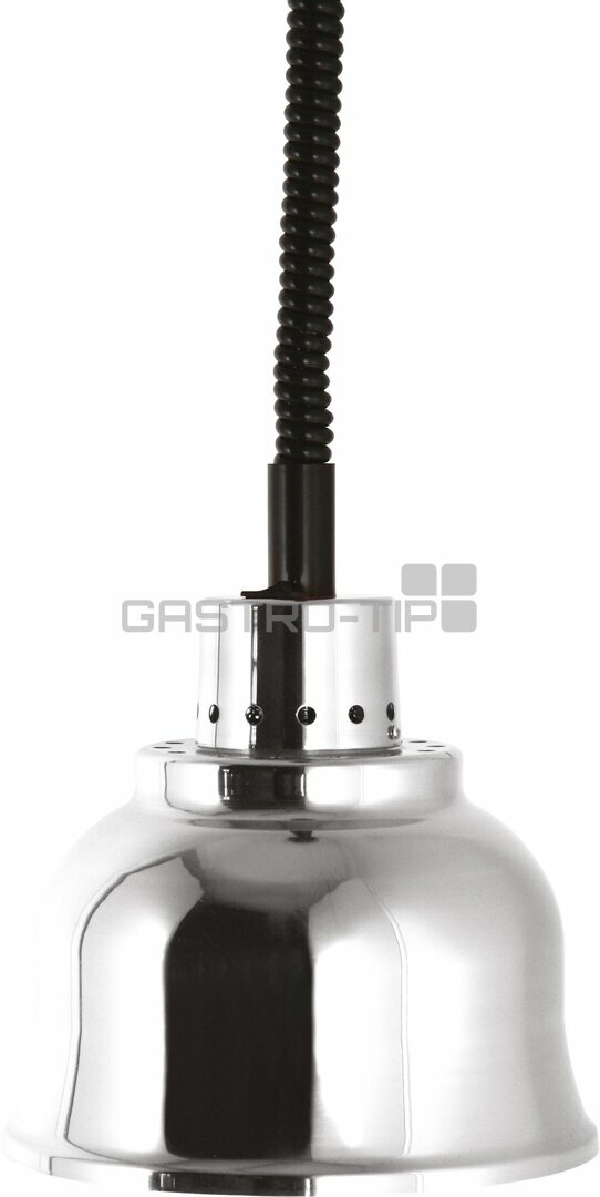 Závěsná lampa v provedení chrom. Ideální do prodejních prostor. S infra lampou nasvítíte pokrmy a udržíte je déle teplé. Atraktivní vzhled nasvícených produktů, ideální pro přímý prodej pokrmů TO-GO jako například pizza, masové pokrmy nebo i pasta...