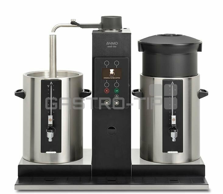 Zařízení Animo ComBi-linie nabízejí možnost připravovat velké množství kávy a čaje v krátkém čase. Výroba horké vody je prováděna v kontinuálních průtokových ohřívačích, které dávkují vodu do jednoho, nebo dvou zásobníků vybavených speciálním filtrem. Kávovary mohou být umístěny na pracovním stole, nebo na speciálním servírovacím vozíku. Vždy lahodná překápávaná káva, nebo čaj, každý vydaný šálek kávy nebo čaje chutnat jako právě připravený. Combi řada je založena na systému rychlého filtrování přes papírový (permanentní filtr) s kávou je vložen do speciálního syntetického držáku). Vyrobená horká voda je dávkována otočným ramenem a prochází přes filtr s kávou do izolovaného udržovacího výdejního zásobníku vybaveného hladinoměrem s ryskou náplně a automatickým nekapajícím výdejním kohoutem. Příplatkové příslušenství (nerezový filtr na čaj, permanentní filtr na kávu, prodlužovací nástavce na kohout, konvice). Snadné ovládání pomocí LC-displeje, automatické přerušení cyklu při odebrání zásobníku, snadné programovatelné řízení, regulace udržovací teploty vyrobeného nápoje (automaticky), vybaven čistícím programem, počítadlo denního a celkového výdeje, signalizace stavu náplně na vodoznaku zásobníku, automatický nekapající kohouty zásobníků. Pevné připojení vody 3/4”, přepad hadičkou Ø 25mm.