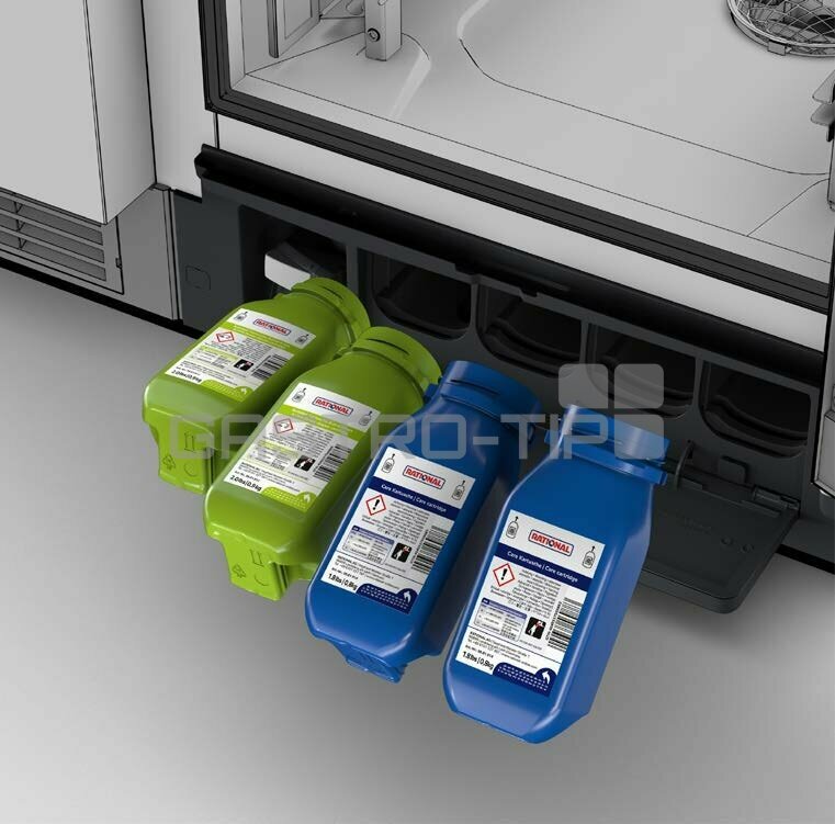 Použití kartuší RATIONAL Active Green a Care (péče o zařízení) umožňuje spoustu čisticích cyklů s pouhou jednou náplní a bez ručního zásahu, zabraňuje kontaktu uživatelů s chemikáliemi a umožňuje efektivnější činnosti včetně samostatného čištění zařízení.