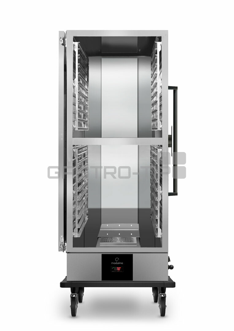 Moduline AIRFLOW+ je nová řada banketových vozíků s ventilovaným ohřevem pro catering. Modely AIRFLOW+ nabízí řadu ventilovaných vozíků, které jsou ideální pro rychlou obslužnost Transport, udržení a výdej teplého jídla v jídelnách, v hotelových, konferenčních sálech, nemocnicích, domovech důchodců a dalších stravovacích provozech. Horký vzduch je vytvářen „zásuvkou Hot Box“ umístěnou ve spodní části vozíku a následně dynamicky distribuován do vzduchového dopravníku umístěného v zádech komory vozíku, tak aby se teplo rovnoměrně rozvádělo a rozprostřelo uvnitř komory a dostalo do všech zásuvů bez přímého proudění na jídlo. Tímto způsobem AIRFLOW+ zabraňuje nežádoucí dehydrataci a povrchovému připalování jídla, typický efekt mnoha ventilovaných vozíků. „Hot box“ je vybaven nádržkou na vodu pro možnost mechanického přivlhčování komory pomocí odpařování vody. Vozíky jsou vybaveny a řízeny digitálním regulátorem teploty (snadné ovládání), příplatkově může být vybaven Wifi modulem pro vzdálené připojením a ovládání zařízení pomocí cloudové aplikace (volitelné). Modely ABK je v elegantním černém designu a výbavě, která zahrnuje lesklé černé plexi vnější panely se zaoblenými hranami, dlouhá postranní madla pro snadnou manipulaci a dále velký boční kabelový naviják.
