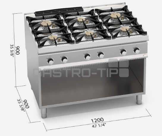 Nové výkonné sporáky linie HIGH POWER vyrobeny z odolné nerez oceli AISI 304. Profesionální poniklované litinové hořáky s vnitřním a vnějším hořením, snadno demontovatelné umístěny v prolisované nerezové vaně vybavené výpustí. Možnost napuštění vody kolem hořáků (snadné a rychlé čištění vypuštěním znečištěné vody). Hořáky s bezpečnostním termočlánkem, zapalovány věčným plamínkem. Kompaktní provedení s otevřeným podstavcem